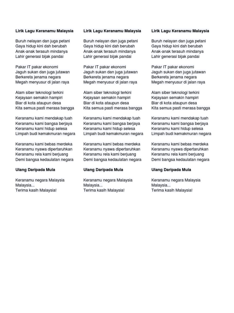 Kongsi Rezeki Kuantan Lirik Lagu Tema Merdeka 2019 Malaysia Bersih Harapan Semua Moga Kita Berjaya Bagai Negara Yang Kekal Merdeka Amanah Bangsa Kita Pikul Bersama Jadikan Malaysia Bahagia Asal Budaya Kita from lookaside.fbsbx.com Sekali merdeka tetap merdeka selama hayat masih di kandung badan kita tetap setia tetap setia mempertahankan indonesia kita tetap setia tetap setia membela negara kita. Maret 2019 (6) februari 2019 (7) januari 2019 (12) desember 2018 (12) november 2018 (3) oktober. Download lagu lagu merdeka dan streaming kumpulan lagu lagu merdeka mp3 terbaru gratis dan mudah dinikmati, video klip lagu merdeka mp4, lirik lagu lagu merdeka full album. Lirik lagu indonesia raya 3 stanza stanza i indonesia tanah airku, tanah tumpah darahku, di sanalah aku berdiri, jadi pandu. Lirik lagu indonesia raya 3 stanza stanza i indonesia tanah airku, tanah tumpah darahku, di sanalah aku berdiri, jadi pandu. Lirik lagu 17 agustus tahun 45 itulah hari kemerdekaan kita. 0 ratings0% found this document useful (0 votes). Lagu setia untuk hari merdeka malaysia 2019, malaysia independent day 2019 theme song.