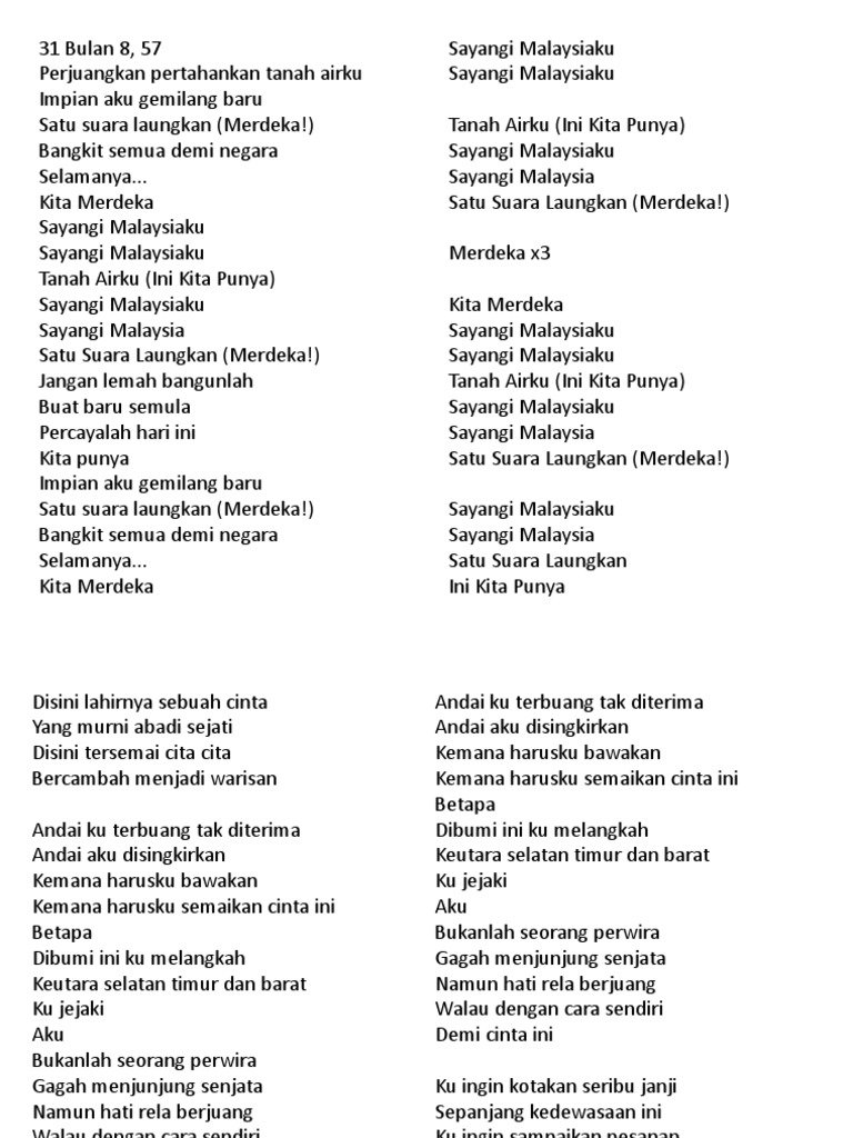 For your search query lirik lagu merdeka 2019 tema malaysia bersih mp3 we have found 1000000 songs matching your query but showing only top 10 results. 0 ratings0% found this document useful (0 votes). lirikata lirik lagu gede roso dan terjemahan / artinya bahasa indonesia dari abah lala. Lirik lagu 17 agustus tahun 45 itulah hari kemerdekaan kita. Download lagu mp3 & video: