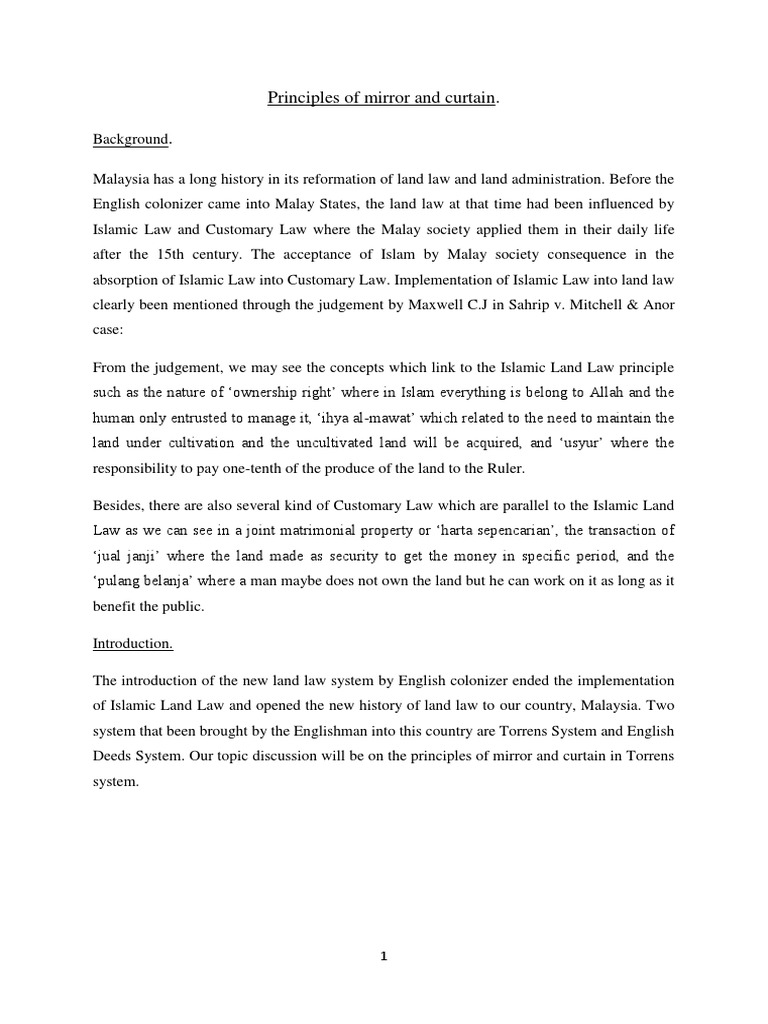 6 peninsular malaysia national land code 1965, act 56. O certificate is guaranteed by statute, and with certain. Table of cases, table of statutes, table of archival documents, notes, index. Before the arriving of english, our land system follows islamic land systems and malay customs. Curtain principle characteristics of the torrens system objectives of introducing the torrens system advantages of the.